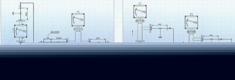 轉(zhuǎn)子流量計(jì)應(yīng)垂直安裝,流量計(jì)中心線與鉛垂線的夾角不超過5°。在累計(jì)的上游須保證五倍公稱通徑的入口直管段,下游保證