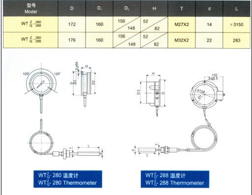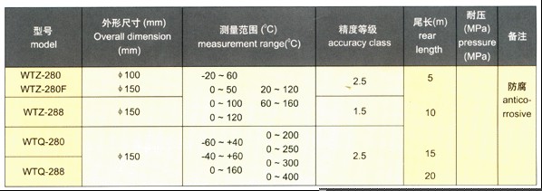 WTZ/WTQ-280/288系列壓力式溫度計該型號壓力式溫度計適用于過程中較遠(yuǎn)距離的非腐蝕性液體或氣體的測量,電接點型壓力式溫度計能在工作溫度達(dá)到和超過給定值時發(fā)出電訊號。