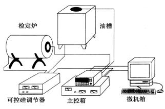 YF100-C熱工自動(dòng)檢定系統(tǒng)由高精度數(shù)字多用表、主控箱、可控硅調(diào)節(jié)器、微機(jī)系統(tǒng)、恒溫裝置(檢定爐和油槽)以及測量導(dǎo)線和通訊導(dǎo)線組成,如圖所示。