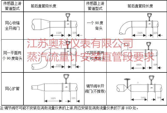 注:調節閥盡可能不安裝在渦街流量儀表的上游,而應安裝在渦街流量儀表的下游10D處。